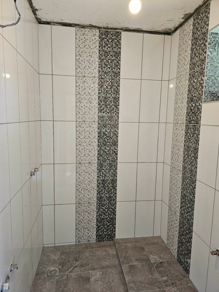 Kombinacijom mozaika je razblažena bela boja zida taman u meri da i dalje ima više nego dovoljno svetlosti, a daje veoma unikatan prostor.