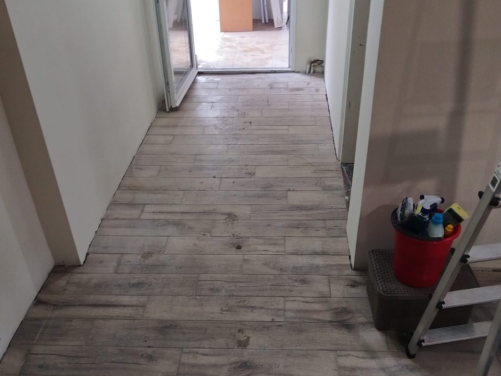 Keramika je postavljena od ulaza preko hodnika i cele dnevne sobe, imitacijom drveta dobija se vrlo atraktivan pod koji je veoma lak za održavanje.